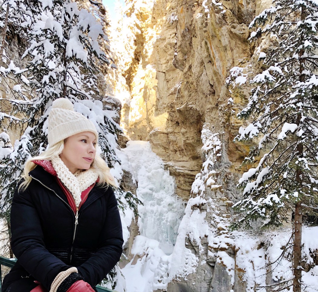 The drive along The Bow River Trail was a perfect way to start our day. It makes you feel as though you are driving down a cottage road with trees decorated with snow. It was a nice change from the fast paced highway, as you feel more connected to the wilderness. We arrived at the Johnston Canyon parking lot at 11am and it was somewhat empty. Apparently, this is a busy spot in the summer, but not so much in the winter. The hike through the woods took my breath away. This had to be the highlight of our trip. When we got to the lower falls we knew we had to forge ahead as they were beautiful, but did not blow us away.