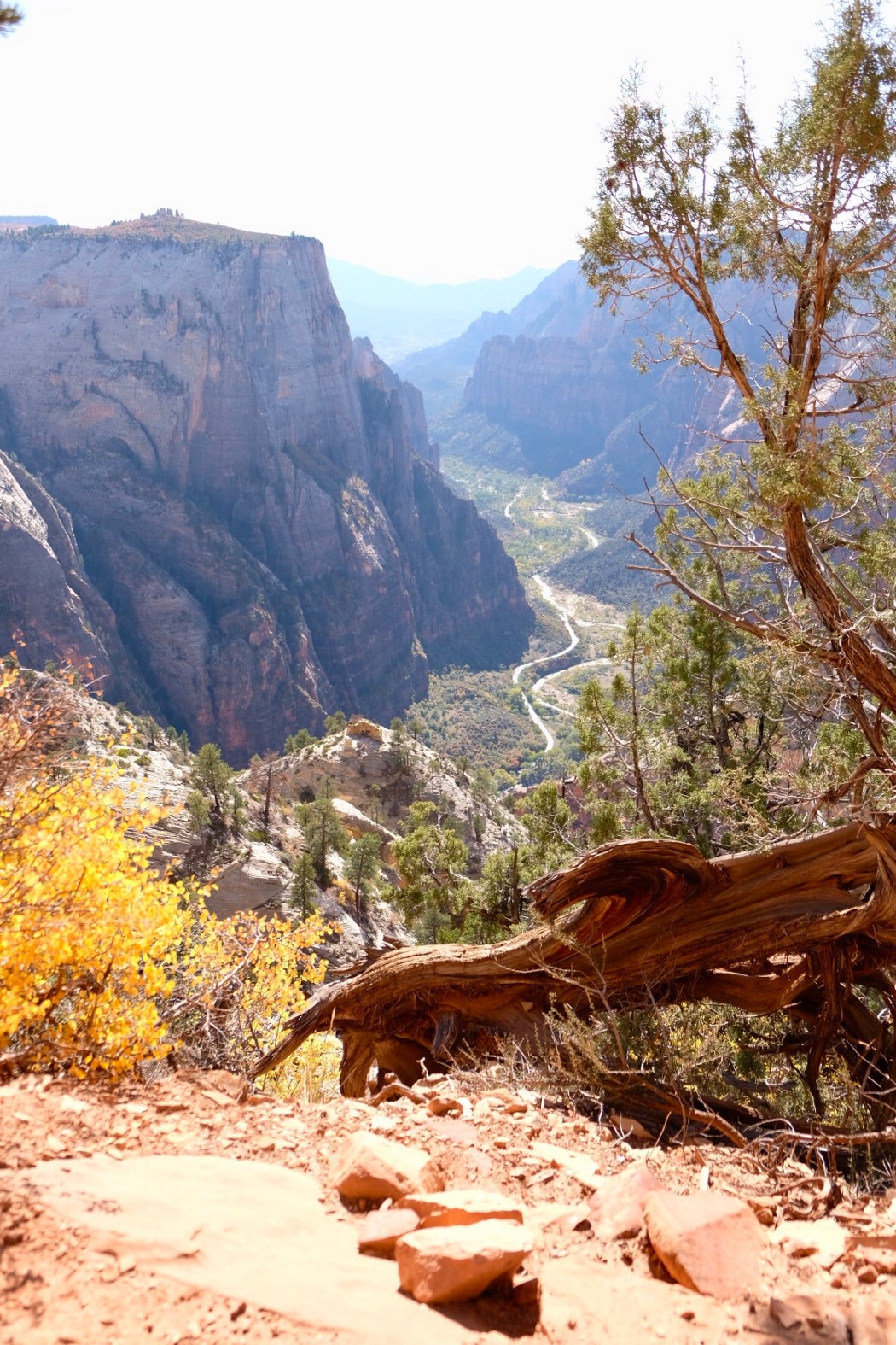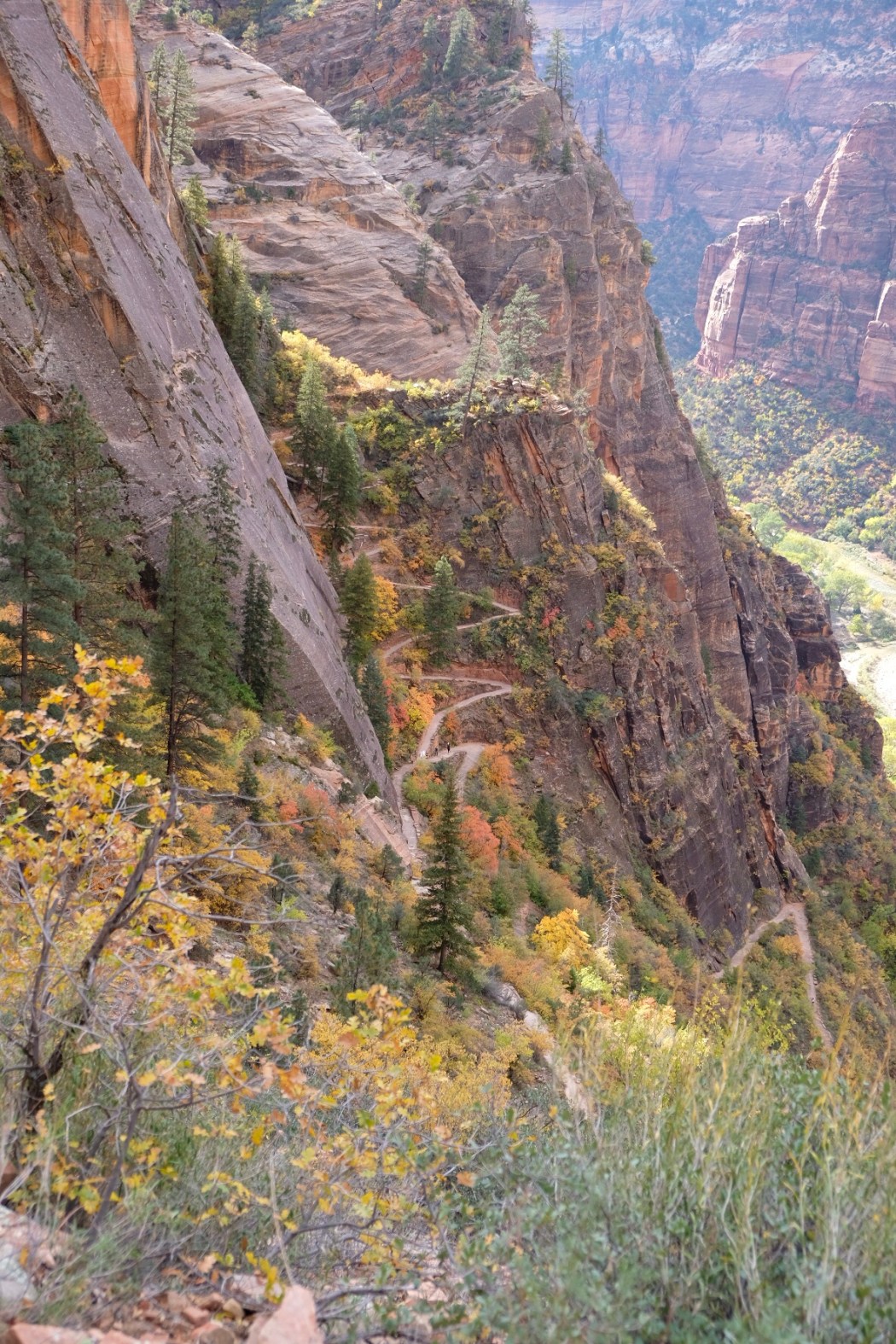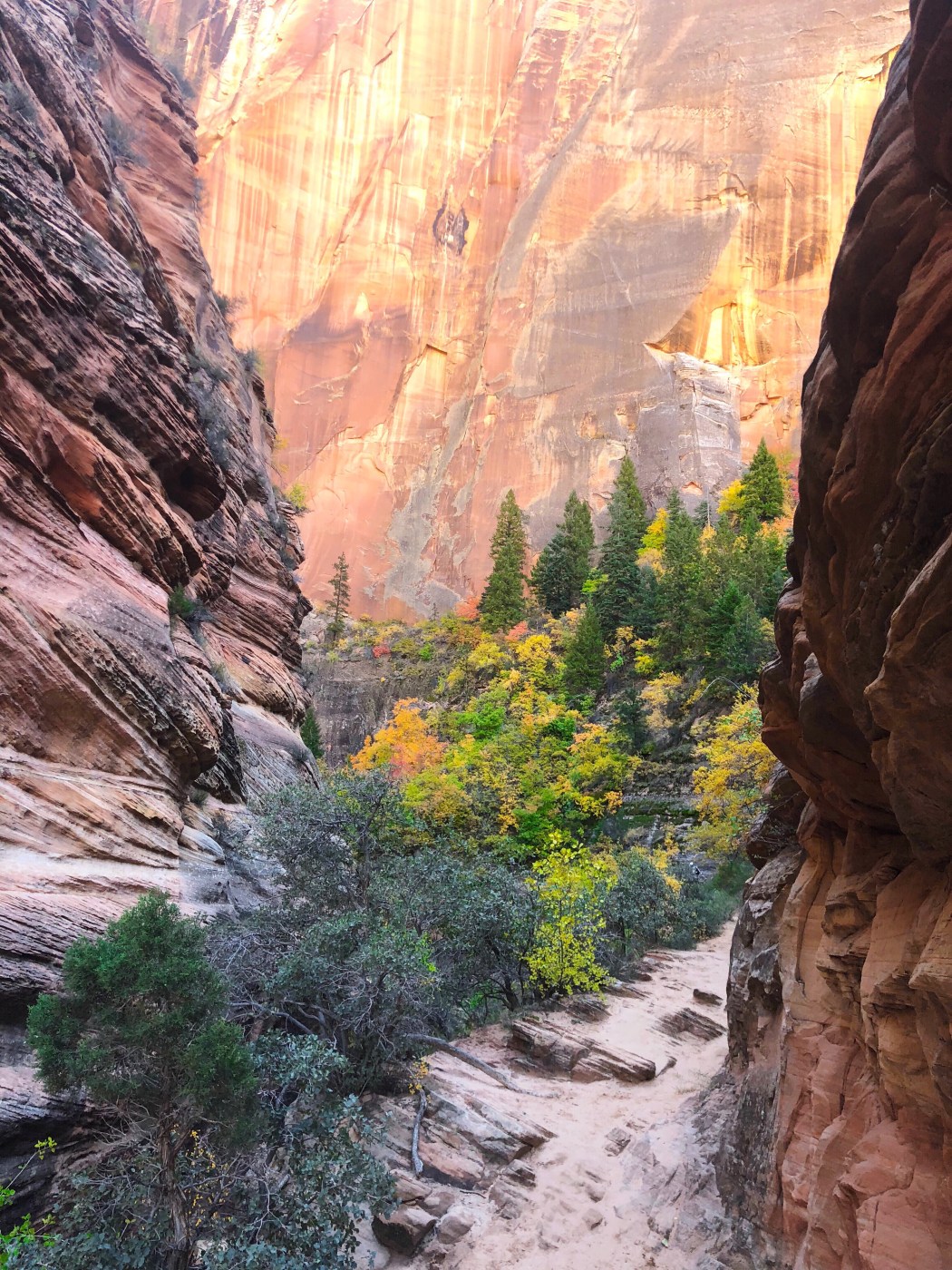 The first leg of the journey is comprised of switch backs for the first mile. This part was very pretty as there are lots of trees changing colours. You get a great view of Angel’s Landing and the park as you gain elevation quite quickly. Expect to be pretty out of breath if you keep a good place. This part is shaded, so it is not too hot.